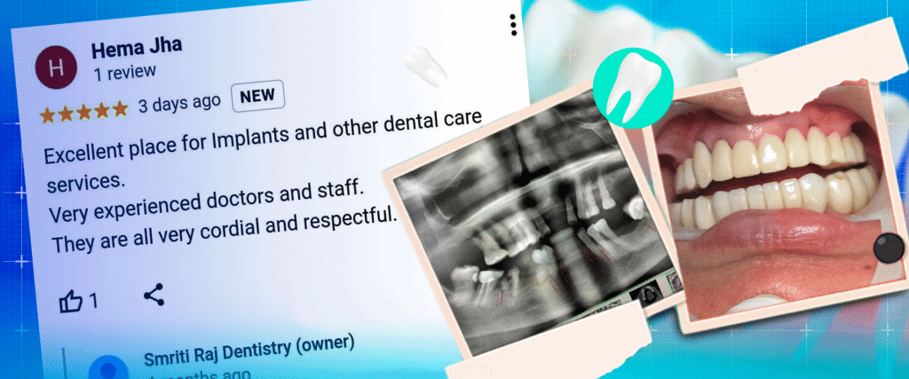 Our patient’s journey at SmritiRaj Dentistry is a testament to the transformative power of modern dental care. With our dedicated approach to Full Mouth Rehabilitation in Delhi, we were able to restore her smile to a level even better than before. By choosing our clinic, you’re not just opting for top-notch dental care; you’re choosing a team that genuinely cares about your confidence and well-being.