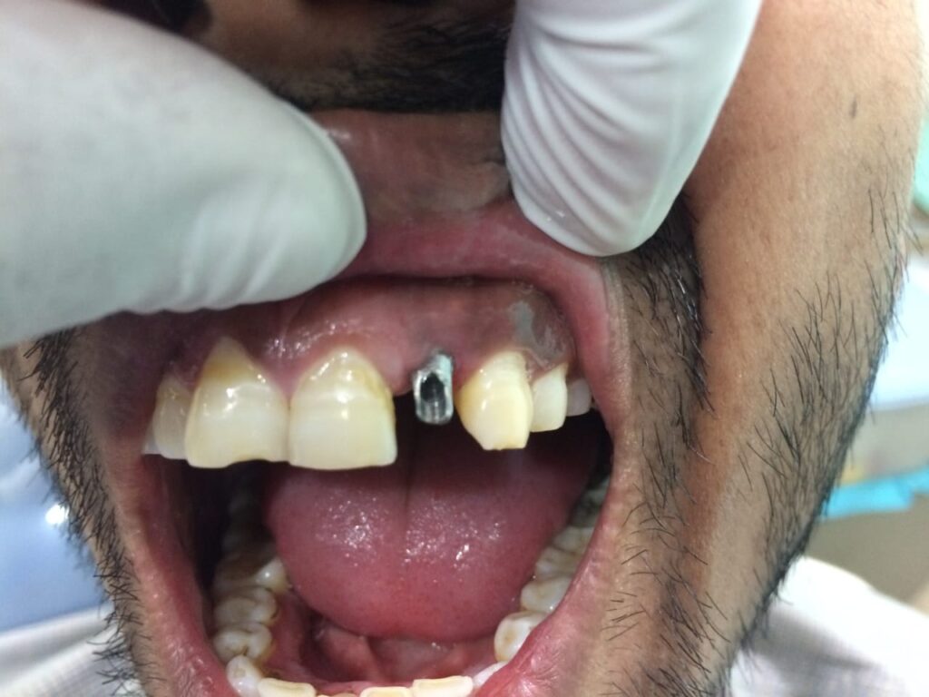 Dental Implants In Dwarka A dental implant is a titanium screw placed in the jawbone to replace the root of a missing tooth. Dental implants procedure offers support to the prosthesis such as a crown or bridge that are made to match your natural teeth.